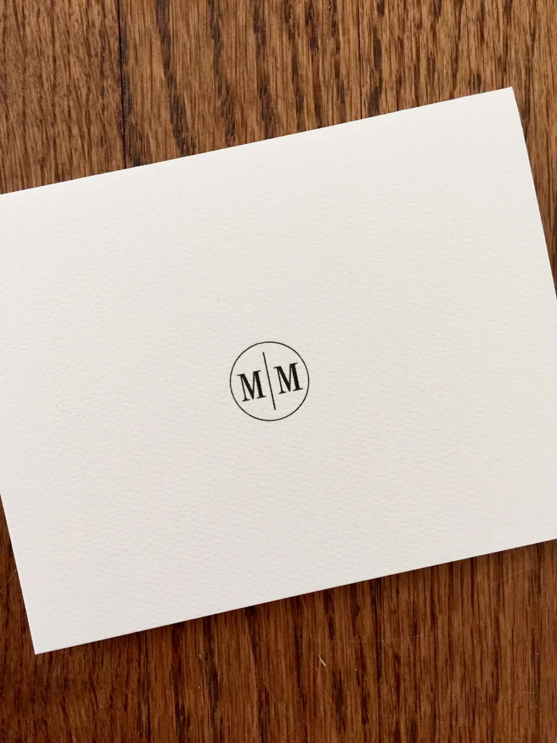 Classic and timeless! Custom monogrammed notecard printed on 80# Sundance felt cardstock. Cards are folded to 4.25" x 5.5" with matching A2 envelope.